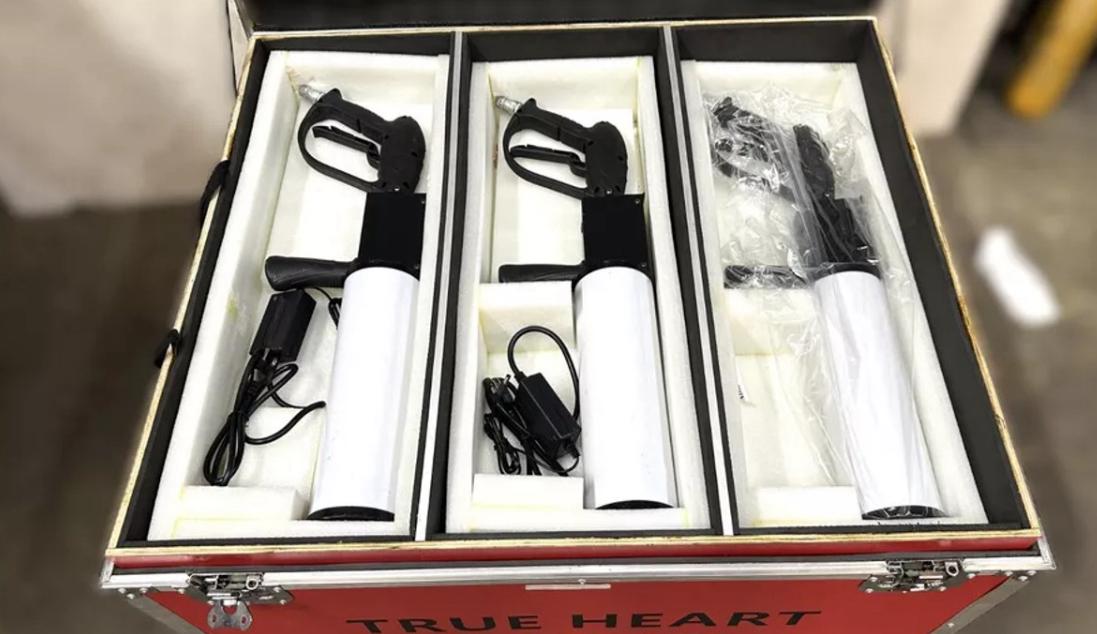 This lot includes 4 CO2 LED Guns, each equipped with rechargeable batteries, chargers, and carrying cases. Ideal for special effects in concerts, clubs, theater, or live events, these CO2 guns deliver impressive fog bursts with integrated LED lighting for added visual impact.