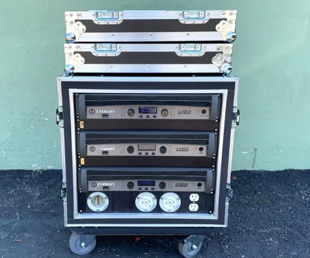 Crown I-Tech 12000HD Power Amplifier Lot (3 Units) w/ Rack, Speaker Panel & Power Distro – Used