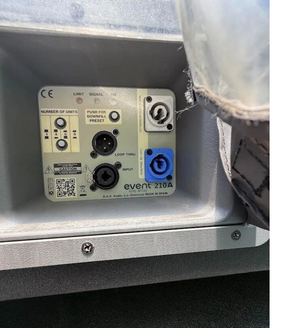 This listing includes (24) DAS Audio Event 210A dual 10” powered line array speakers, each thoroughly tested, cleaned, and verified for performance. All units come with fitted protective covers and rain hoods, ideal for demanding outdoor or touring environments. The Event 210A delivers exceptional output and clarity in a compact and rugged enclosure, suited for concerts, festivals, and fixed installations.
