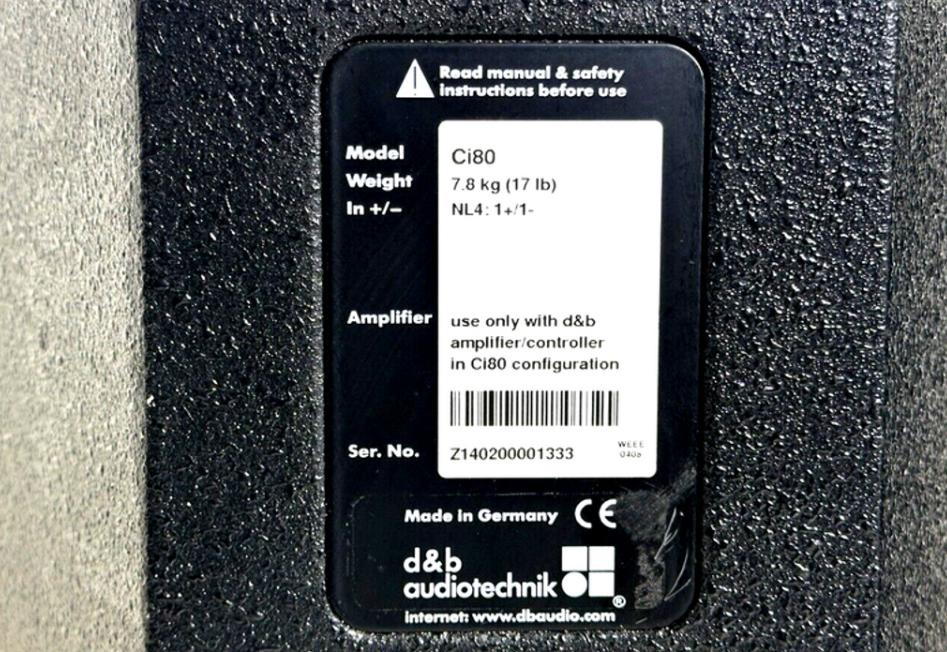 The D&B Audiotechnik Ci80 is a high-quality, coaxial 2-way passive installation speaker, known for its precise dispersion and compact footprint. Perfect for fixed installations, delay systems, or distributed sound, this unit is fully tested and ready for integration.