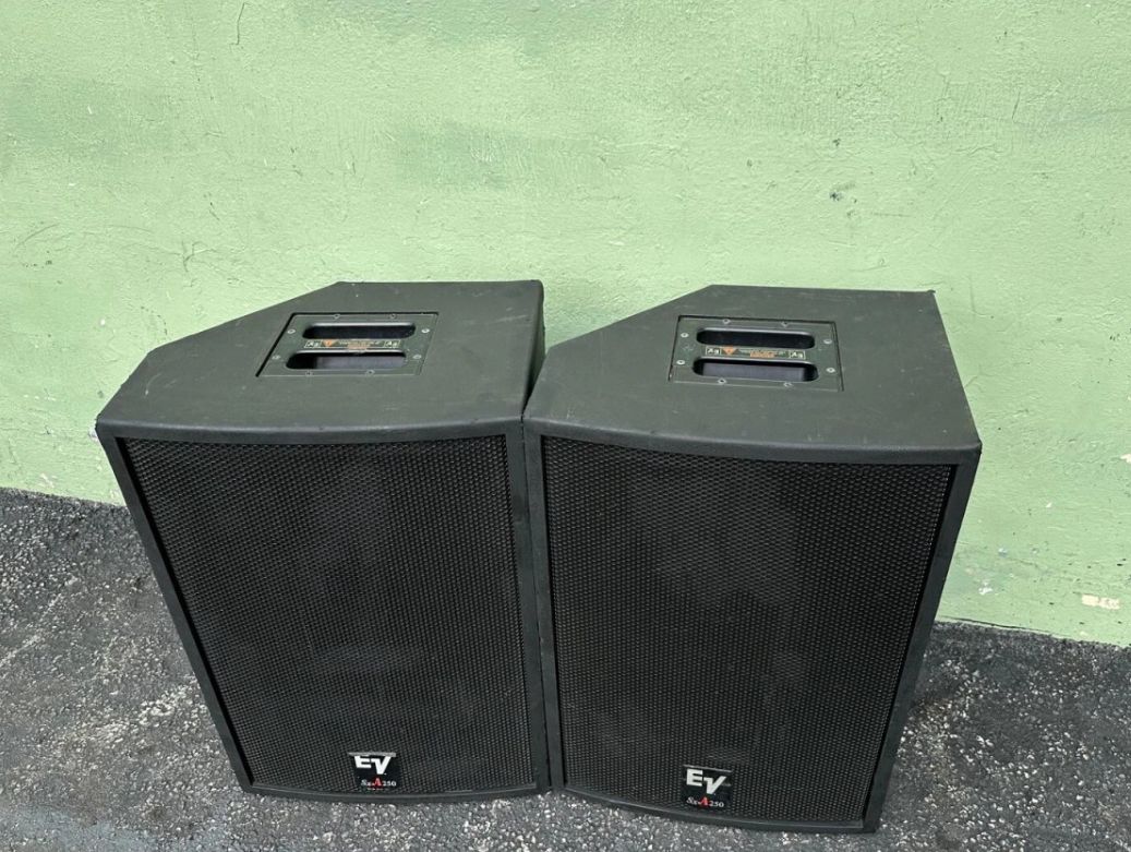 This listing includes (2) EV SXA250 12” powered speakers in fully functional condition. These self-powered loudspeakers are ideal for mobile DJs, small venues, presentations, and monitor applications, offering dependable performance and built-in amplification in a compact enclosure.