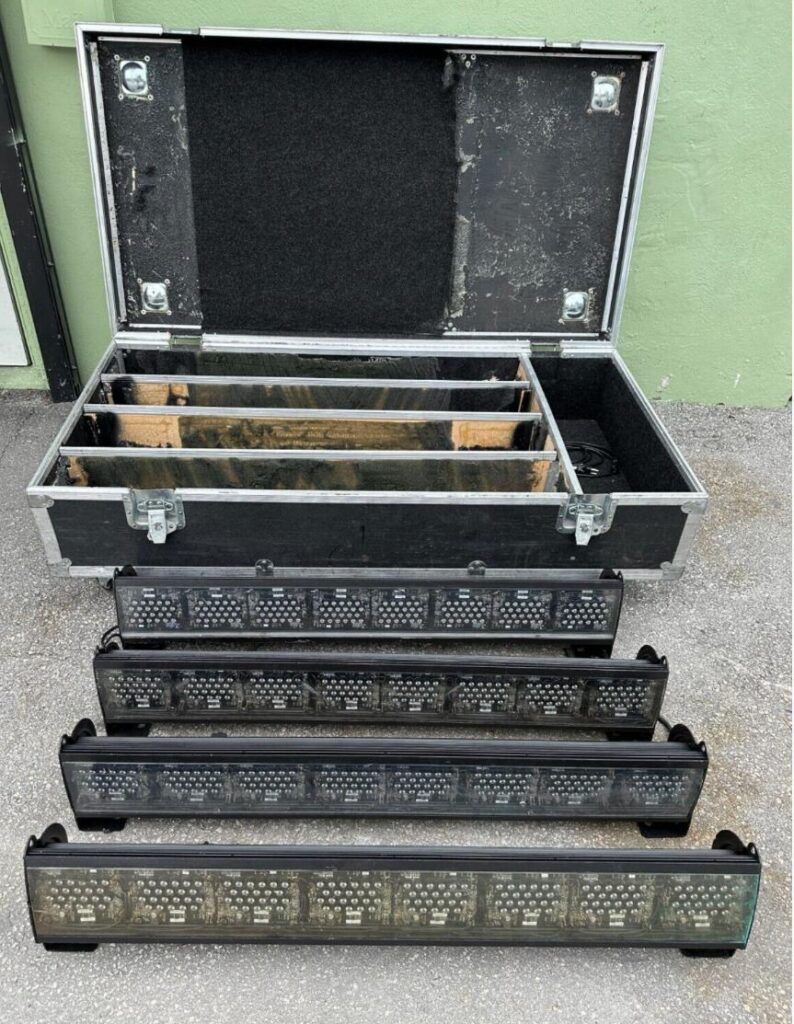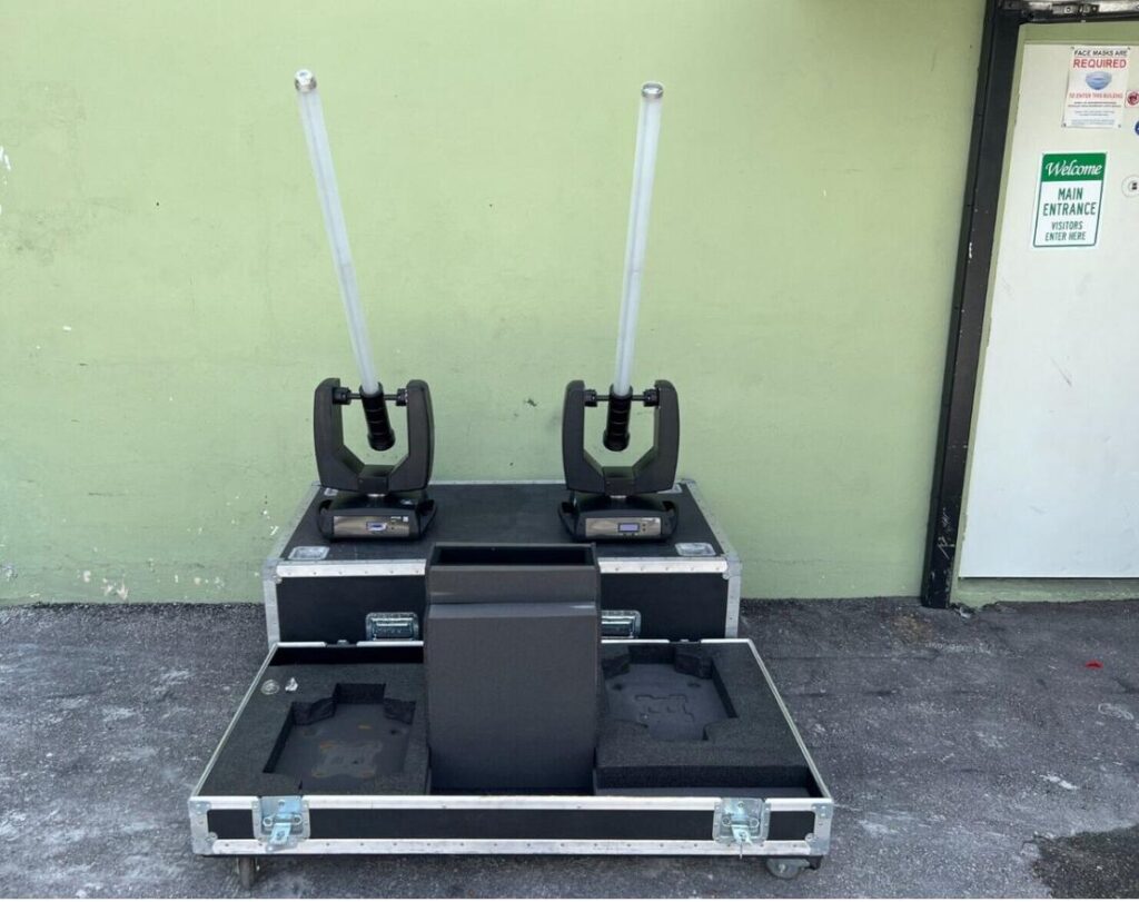 This listing includes four (4) I-Pix BB7 LED Beam Lights housed in a durable blue rolling case. These high-performance LED fixtures are ideal for stage lighting, concerts, theater, and event production. All units are in good working condition with light cosmetic wear consistent with professional use.