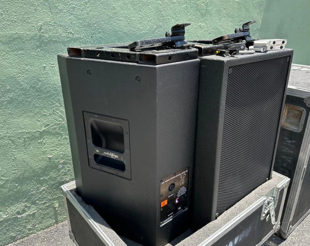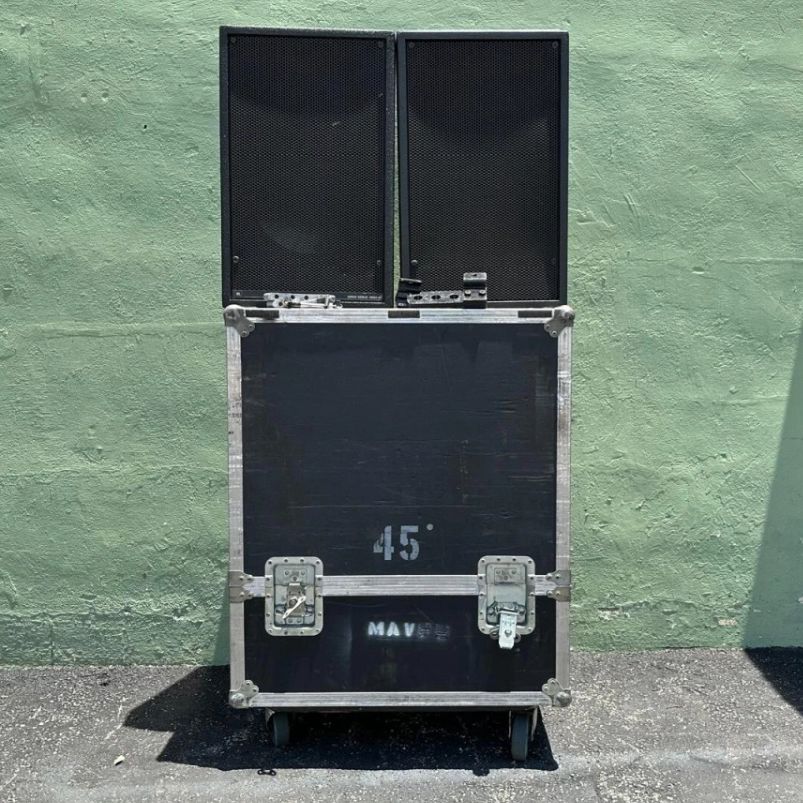 This lot includes (2) JBL Array Series 4892A active speakers housed in a durable wheeled hard case for easy transport. These speakers are known for their high output, rugged build, and versatile performance in touring or fixed installation environments. Units have been tested and function as expected, with some cosmetic wear from regular professional use.