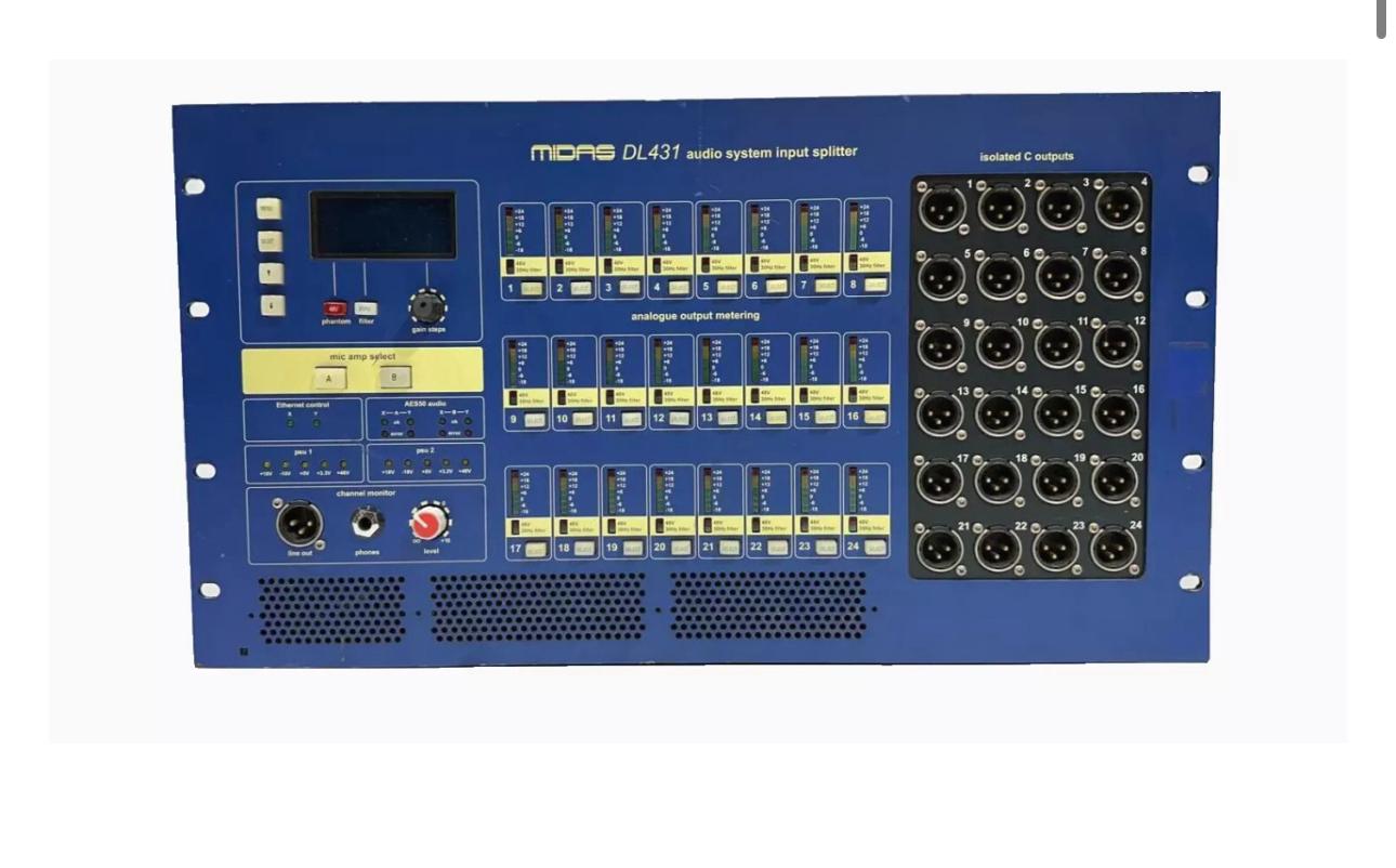 The Midas Pro Series DL431 is a high-quality input splitter designed for professional audio systems, providing reliable signal distribution with minimal noise and distortion. Fully tested and in excellent condition.