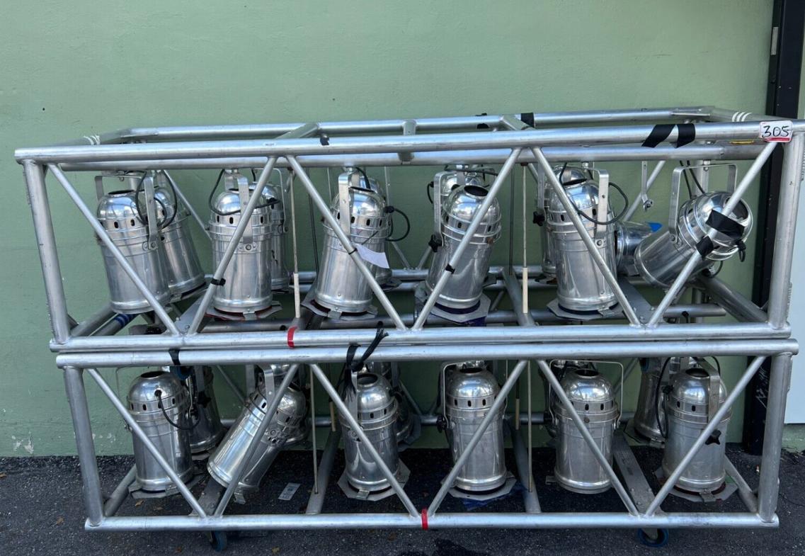 This lot includes 16 Par Can stage lights, ideal for basic stage washes, uplighting, and general-purpose event lighting. These rugged, versatile fixtures are commonly used in theaters, houses of worship, schools, and event production setups.