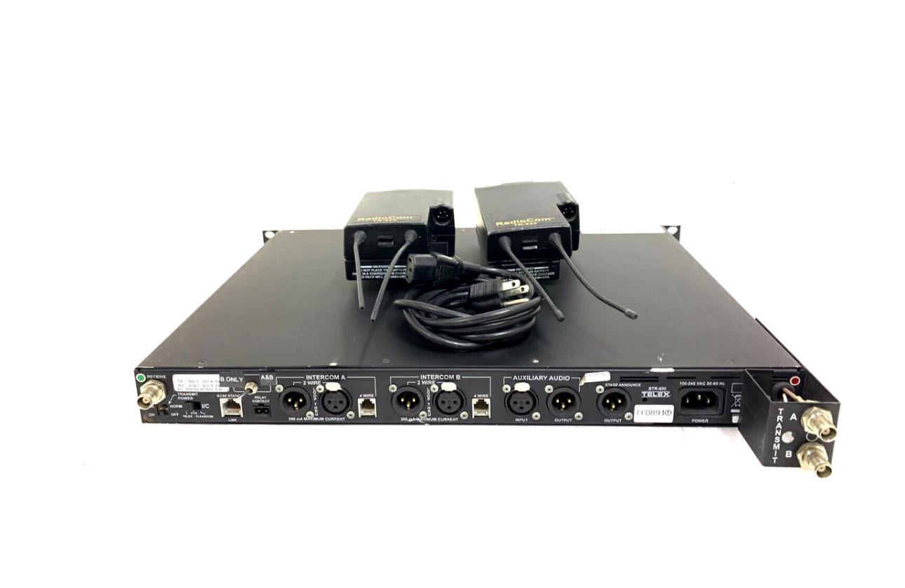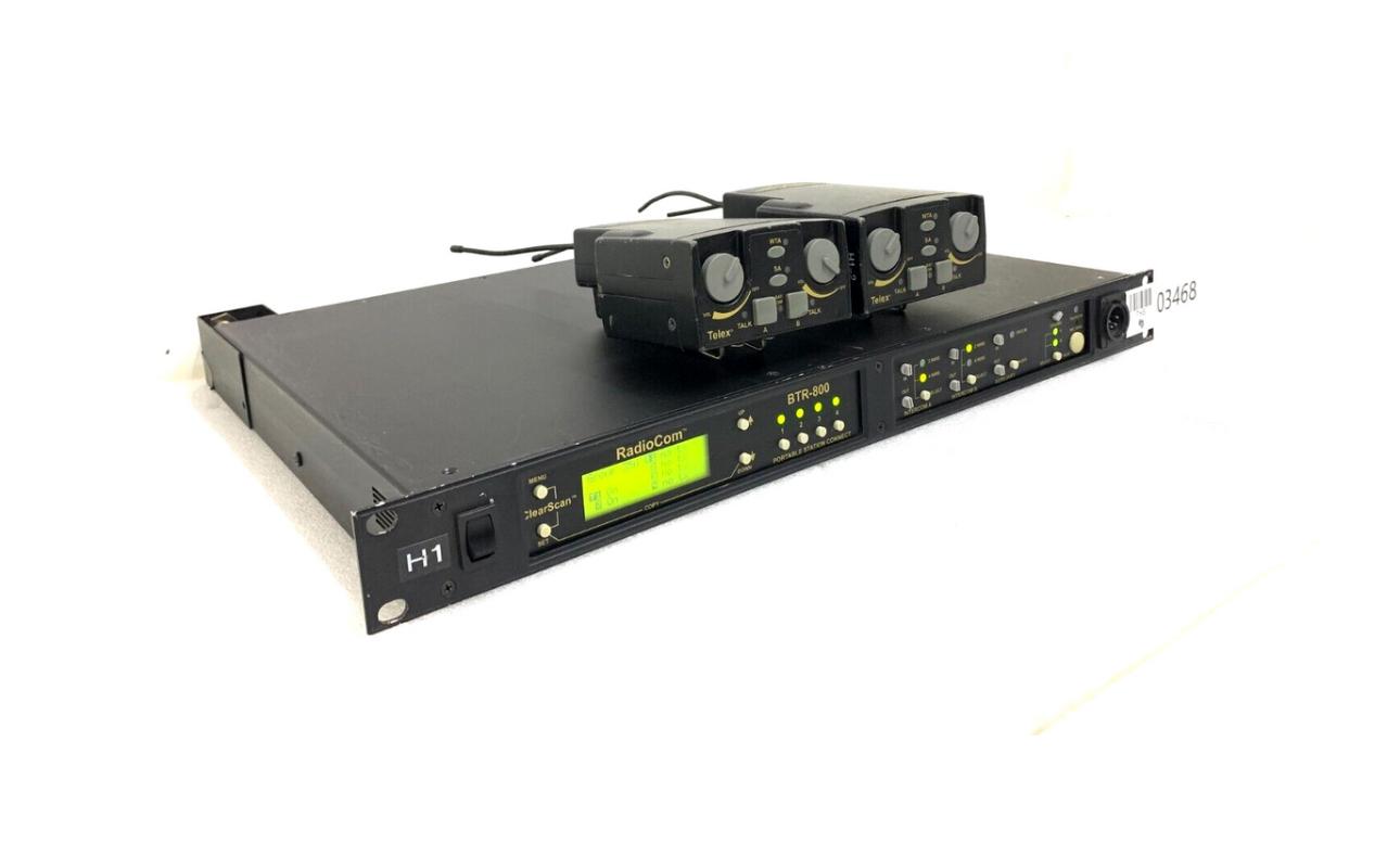 This professional Telex/Radiocom wireless intercom system includes the BTR-800 base station and TR-825 dual-channel beltpack, operating in the H1 frequency band. Designed for broadcast, theater, and live event production, this system delivers clear, full-duplex communication with dependable wireless coverage.